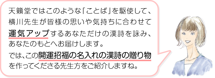 お客様の思いや気持ちに合わせて漢詩を作成いたします。